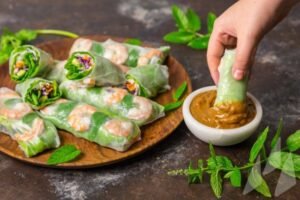 Besides fried Spring Rolls, Summer Rolls are perfect for those who love fresh food. Similar to Spring Rolls, they are wrapped in rice paper, which is softer and a bit thicker. The filling usually includes fresh herbs or lettuce, boiled shrimp or pork, and vermicelli noodles. Unlike Spring Rolls, which are deep-fried, Summer Rolls are eaten fresh right after being wrapped and are served with a handmade sauce made from ingredients like pineapples, soybeans, or peanuts.