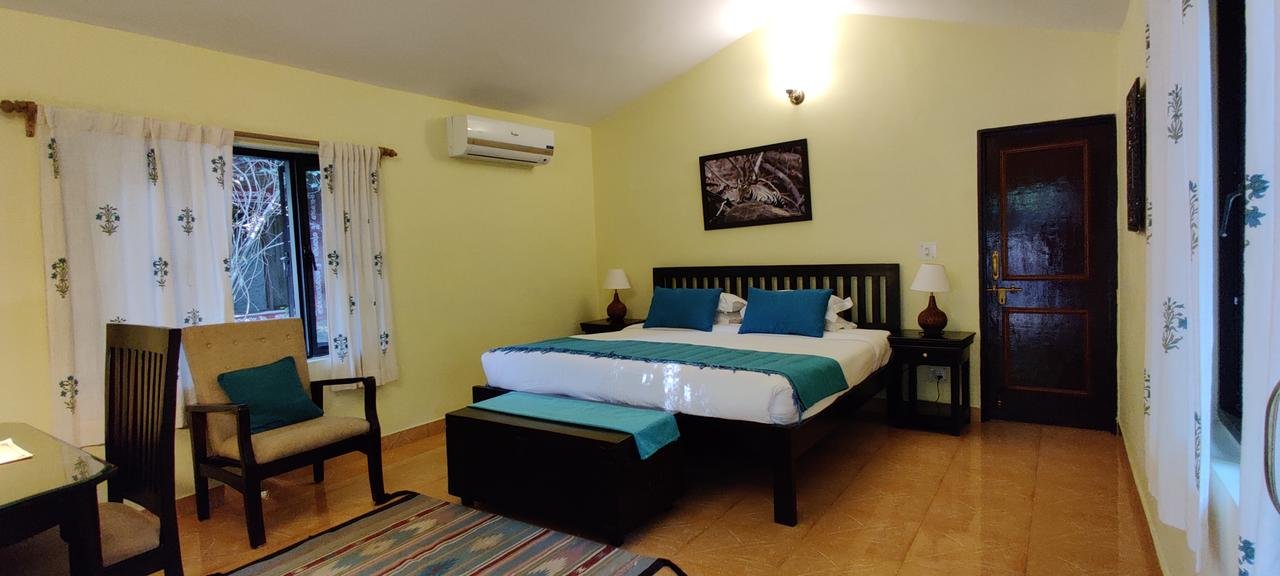 The fragrance of lemongrass pierces the air in Bandhavgarh Jungle Lodge while tall bamboo branches and fruit trees extend a warm welcome to guests arriving in this charming, 18-room lodge built by the Sankhalas, a celebrated family of conservationists. The lodge is eco-conscious and for that reason, it’s a favourite among travellers who advocate forest conservation. Just off the busy Tala main road, Bandhavgarh Jungle Lodge allows a wonderful experience of slowing down. The staff, locals who are encouraged to work, are trained as per best global practices. While meals in daily lives are hastily consumed, in Bandhavgarh you enjoy each bite that you consume. Breakfast underneath the saltrees, with birds chirping in perfect harmony, is a memory that you will cherish. The team also organises romantic dinners on a candlelit path in the lodge’s area in the open, underneath the star-lit skies. There’s a rustic charm about Bandhavgarh Jungle Lodge. With a total of 18 rooms, including 14 cottages along with four rooms in a separate villa, the architecture is inspired by traditional village-style homes. The sloping baked-earth roofs; colourful, indigenous furnishings along with tribal art, are an ode to the rich heritage of this wonderful region of India. Welcome to your ‘home’ where you lose – and subsequently discover – yourself. All rooms face the sun-kissed gardens or the forest area and the architectural adage, ‘bringing the outside, inside’ suits this property perfectly. Comfortable beds with handpicked linen, home décor, makes the stay warm and cosy. There is a writing table, adequate lighting, comfortable furniture in the balcony area for you to enjoy your hot cuppa in the midst of a forest. There is 24×7, hot and cold running water supply in the attached bathrooms, and room service for guests.