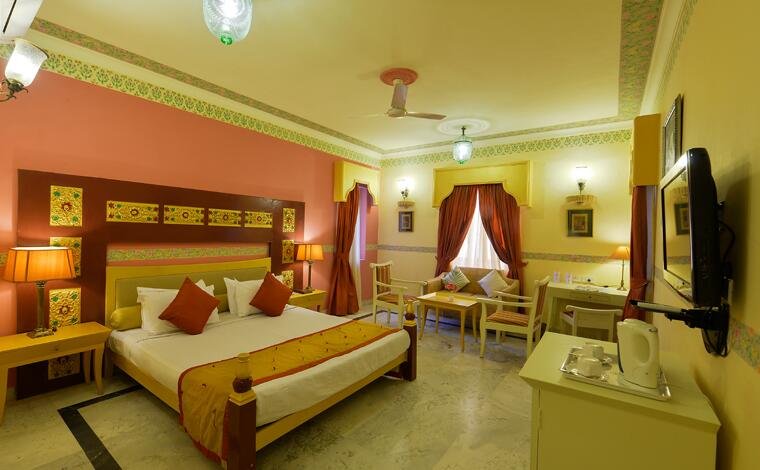 This 4-star hotel is located in Jaisalmer, Rajasthan and features a blend of the modern and the classical. Situated in the heart of Thar Desert, the hotel is situated right off the Pokran-Jaisalmer-Barmer Highway and is 3.5 km from Lake Gadisar. The property, managed by the Rathore family, ensures that guests get personalised service.