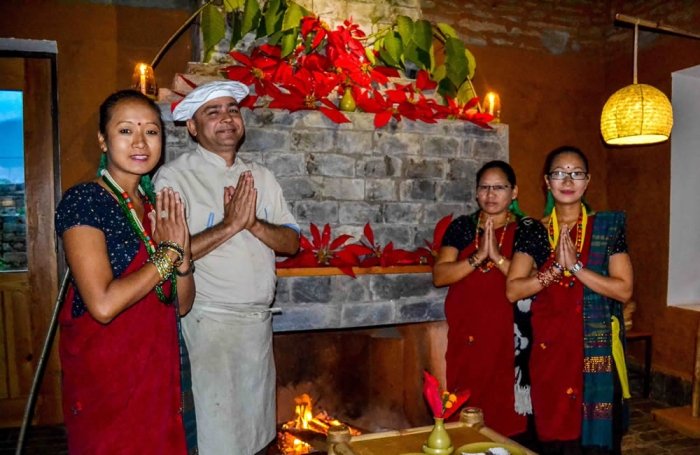 Gorkha Gaun Resort is ideally located in the lush green hills of Gorkha, facing Mt. Manaslu- the eight highest peak in the world, Gorkha Gaun Resort is 140 Km west of Kathmandu and around four hour drive from the capital. The place is widely known for its historical reasons, being home to the first king of Nepal who united Nepal and hence provides a unique opportunity to visit the famous and historical Gorkha Fort and Gorkha Museum. Our cottages offer the spirit of tranquility with a myriad of views in natural surroundings along with sheer comfort. We offer services par excellence with traditional hospitality. Our services include a salient restaurant and bar perched on the top with authentic local and continental food, short treks and a guided tour of the nearby villages. Our local staff are happy to welcome guests beyond the resort to experience their community. Our cottage have been built with stones and boulders from nearby and quarries in and around Gorkha. The Stone slates for the roofs and floors were carefully hand carved and put together with mud mortar like it has been done in traditional villages for Nepal for years. The interiors of the cottage boats of Nepali handicrafts with use of local bamboo and wood. We provide a choice of single room or double room with a myriad of views. Some cottages face the mountain ranges and the lush green community forest while others face the small town of Gorkha. All the rooms have attached bathrooms with hot water and small private parches. The Natural surroundings of the cottages is just perfect for guests who need a sanctuary to relax. Once in the resort, guest can choose to stay within the premises yet explore the tranquil outdoors and enjoy the beautiful view of the sunrise or sunset. Our restaurant is perched on the top of the resort from where guests can enjoy great views of mountains and the valley below. It is a perfect place for social activities, campfire or star gazing at night while savoring sumptuous meals and drinks. The indoor fireplace is a hearth for the diners during the winter. Fresh seasonal vegetables and fruits are served from the local surroundings. Blends of continental, oriental and Nepali dishes are offered.