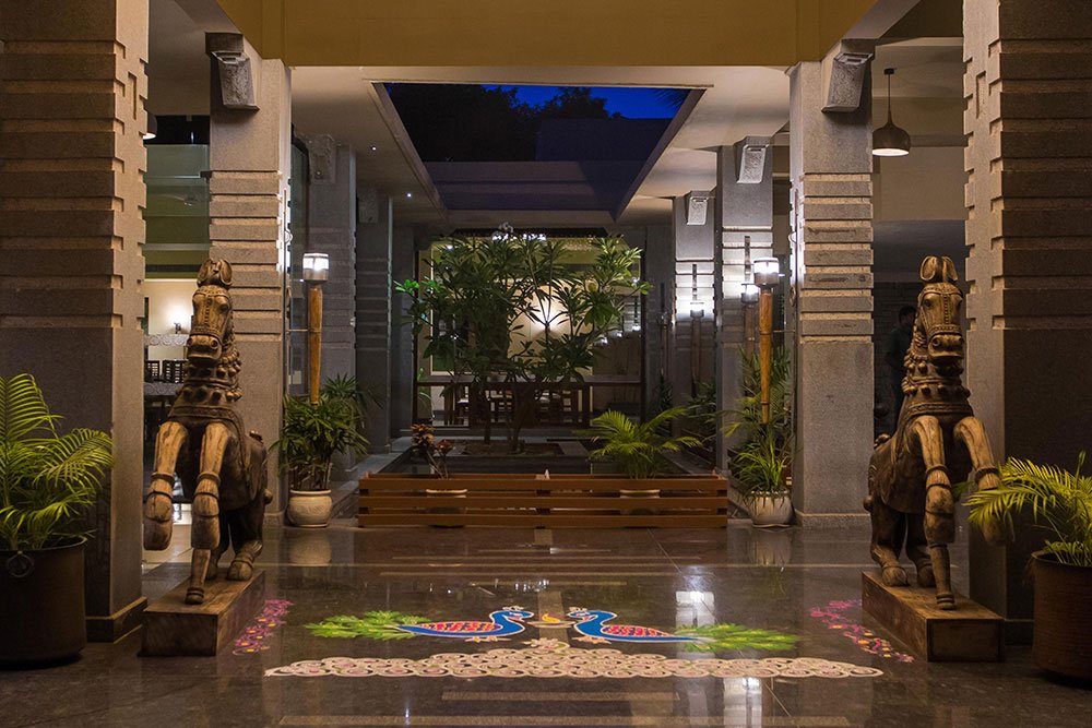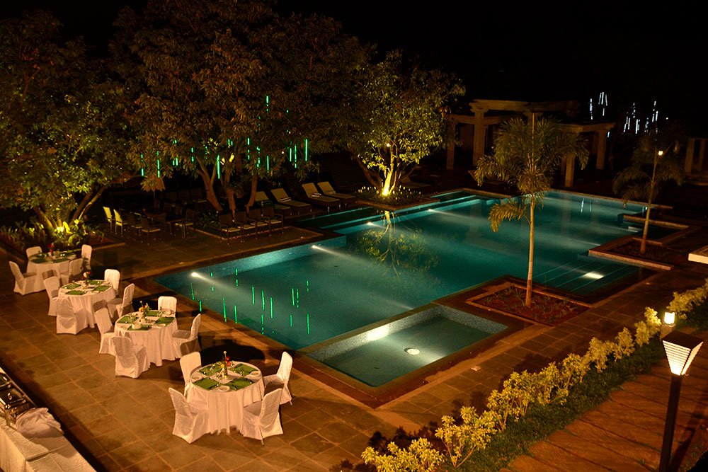The Heritage Resort is spread over 9 acres and is situated less than 6km from the ruins of Hampi. The resort boasts of lush greenery, an outdoor swimming pool, and a spa and wellness centre. Guests may choose to relax on their own or join a yoga class. The hotel architecture is Vijayanagar style and superior villas come with plunge pools or whirlpool bathtubs. An outdoor pool is also available. The pristine portals of this wonderland stitch together a spectacular sojourn. Enter this sanctum as you stroll through our plantations. Steal a delightful, relaxing moment for yourself under the Banyan tree, listening to the sweet symphony of the cuckoo birds. Laze around in any of the hidden corners of the resort. Savor a ripe mango waiting to be picked. Immerse yourself into this ancient land and embrace the gift of its abundant heritage. The Heritage Resort offers an outdoor swimming pool, green lawns for the perfect picnic, a spa and wellness centre and BBQ facilities. They also have a business centre and meeting/banqueting facility. Complimentary Wi-Fi is available in all public areas. The resort has deluxe villas, pool villas and Jacuzzi villas. The villas are air conditioned and tastefully decorated with all the modern amenities required for a luxurious stay. This includes flat screen televisions, mini bar, safe and tea/coffee making facility. In-room services available include housekeeping, laundry, ironing and dry cleaning. The Kishkinda multi cuisine restaurant offers delicious food cooked according to traditional recipes with authentic ingredients. In fact, most of the fruits and vegetables served are grown on the resort s organic farm. The resort also has a bar that offers the choicest wines and spirits. Our menu offers an array of world cuisine, local favorites, and food suitable for the sattvic diet too so there’s something for everyone, no matter your diet preferences. There’s never a dull moment in this culinary wonderland, with all the friendly banter and smiling faces. Besides, we can’t deny that the privilege of enjoying a farm-fresh meal is an extraordinary experience in itself. In an otherwise dry city, Madhushala Bar sets the mood just right to tipple away on the spirits of your choice. Our bartender is full of surprises and will sweep you off your feet with a glass of the most amazing drink. The sophisticated energy that the bar offers is perfect to blow off some steam and savor a silent moment, away from all the noise of the city. And if you’re looking to have a memorable evening, might we add that our bar has the ideal environment to let your hair down and make some great memories!