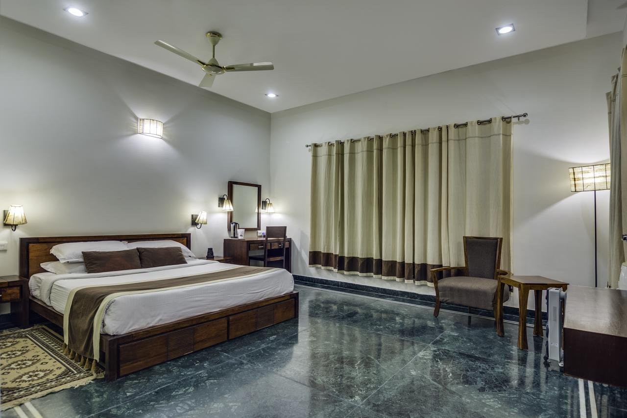 Spread area 2.75 acres of land a grand total of 75 key property including 46 super deluxe, 9 cottages and 20 delux rooms of 350 sq ft each, overlooking to our maintained verdant garden or to our poolside. The rooms are done kept in mind the modern comfort of our guests while being environment friendly.