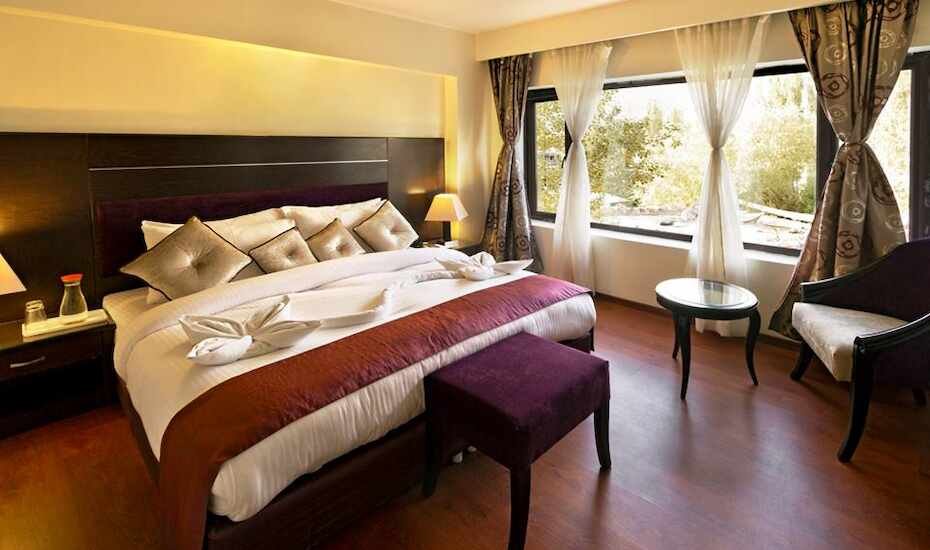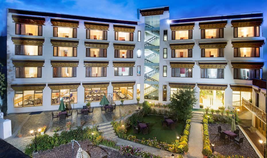 Hotel Singge Palace, 190 meters from Kigu Tak and 220 meters from Nezer Gyalpo in Leh, offers an idyllic atmosphere and lavish stay to all its guests. With its finest facilities, Hotel Singge Palace is one of the best and oldest hotels here in Leh. Hotel Singge Palace offers its guests with a spacious restaurant, gardens and terrace. The large conference hall, meeting/banquet facilities with up-to-date audio-visual equipment is ideal for those on business. Other services include complimentary multiple-choice buffet breakfast, 24-hour front desk, free Wi-Fi and parking, lawn and sitting area, doctor-on-call services, on-demand cultural show, round-the-clock heating, 24-hour power backup, recreation and indoor activities. Guest can choose from Super Deluxe Single/Double rooms, Deluxe Single/Double rooms, Premium Single/Double rooms, Executive and Presidential Suites. The spacious rooms overlooking the mountains are finely decorated and offer 24-hour room service, laundry/dry cleaning, newspapers, minibars, tea/coffee makers, free bath essentials, complimentary meals, free bottled water etc. The charming, colourful and airy restaurant in the hotel offers authentic Tibetan, Chinese, Indian and Continental delicacies. The guests can relax and chat in the coffee shop over light snacks and warm refreshing drinks.