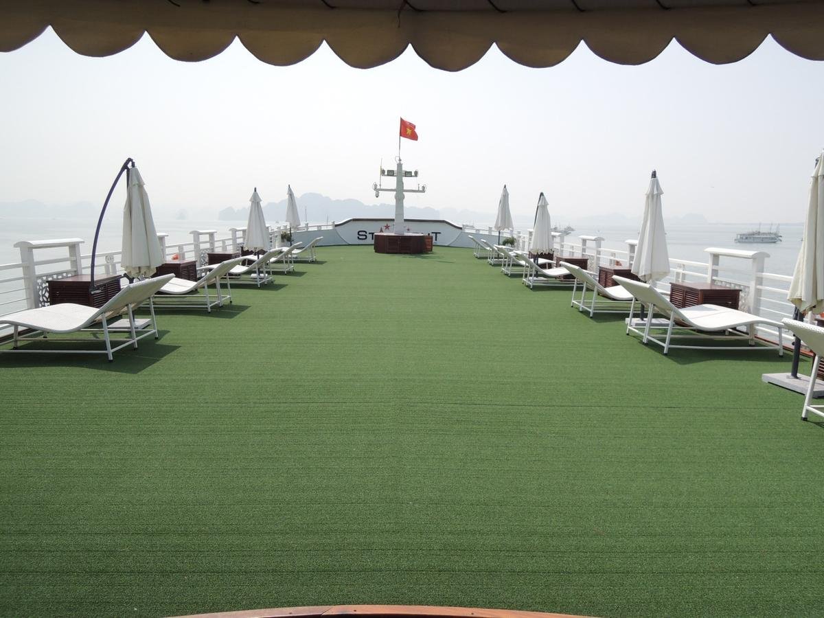 Starlight Cruises Halong Bay—the luxurious and elegant junk cruise line that offers the perfect mix of traditional elegance and modern comfort. When you set out on a Starlight Cruise, you experience the world’s natural heritage site, Halong Bay, in total style.At Starlight Halong Bay Cruises, we are renowned for the special care and attention to detail that we give to everything we do. From the upscale décor and stunning interior design of our ship, to the friendly, personalized service we offer each guest, we are committed to ensuring that every part of your journey is perfect. Starlight Halong Bay Luxury cruise ship features 32 luxury cabins, all fully equipped, and offering the most magnificent and expansive views of the Bay—definitely some of the most breathtaking scenery you will ever lay eyes on. When you are not enjoying the many comforts and conveniences of your cabin, join us in the restaurant for a true dining experience, or on the panoramic sundeck where we offer plenty of activities to keep your mind and body energized. Of course, the beauty of Halong Bay all around you may be a little distracting, so we apologize in advance if our magnificent environment throws you off your game. Starlight Halong Luxury Cruise cabins are elegantly decorated and offer all the amenities of home. Each of the 12 spacious deluxe cabin on Starlight Cruise, wood-paneled cabins has been luxuriously designed for the comfort and enjoyment of our guests. The beautifully presented furnishings in each 22 sq.m cabin are influenced by traditional Vietnamese culture and comprise a collection of authentic, handmade art from different regions throughout VietnamAll the rooms onboard Starlight Cruise have been tastefully designed with shiny wooden floor and ornaments and furnished for the utmost comfort throughout the cruise. Located on second deck of our cruise, Executive cabin offers the view from the window inside cabin to get the view of the bay’s landscapes. With 18 cabins total, we bring travelers the best view of the natural landscapes with the area of 22 square meters for setting your exotic throughout the bay.The cabin features all the amenities as a luxury hotel with a large bed, a cozy sitting area with many other amenities. It is great to get the feelings of calm and luxury in Suite cabin with balcony. Situated on third deck and also the largest cabin on cruise, Suite cabin with 55 square meters offer a very comfortable bed and cabin with furniture of a large bathroom equipped with Jacuzzi plus a large window for having the oceanic views while you are relaxing. The Starlight restaurant offers delicious, freshly-caught seafood and other specialties to make this trip a true celebration of all the senses. You’ll enjoy fine cuisine as we cruise along the calm waters of the bay, enjoying a lovely cross breeze and stunning views of the thousands of islets surrounding us. Experience dining on our style restaurant and bar on the third floor with the seating capacity up to 100 passengers, Starlight cruise restaurant offers a dining comfort with the surrounding views of the fantastic scenery. Designed as a place of discovery and sharing, restaurant and bar is an ideal place for tasting delicious dishes and view the bay’s beauties.