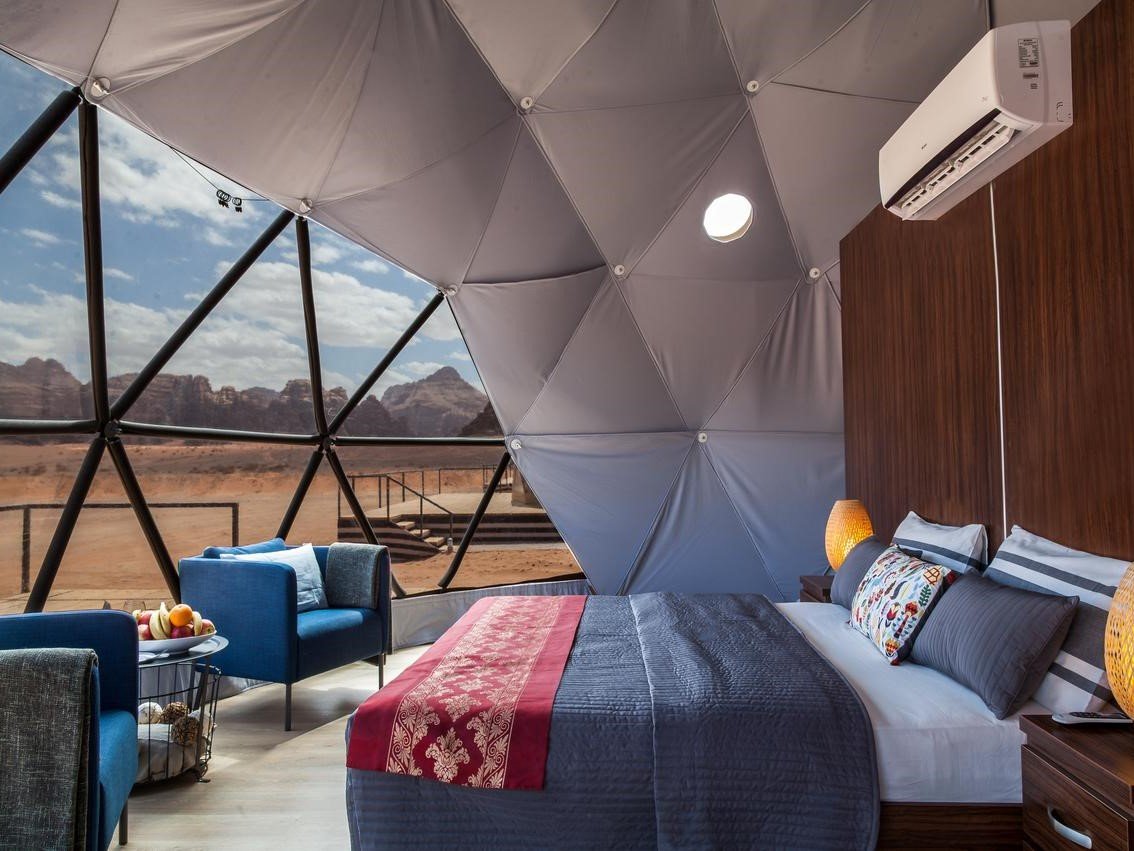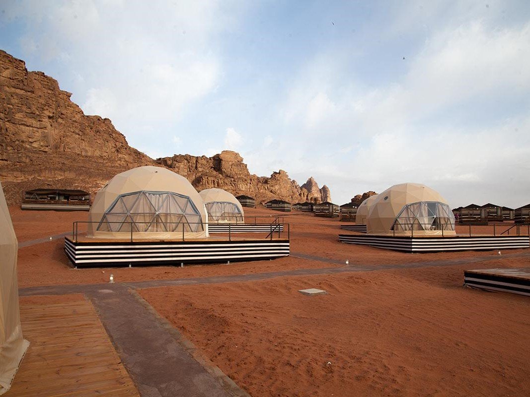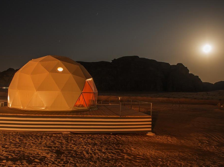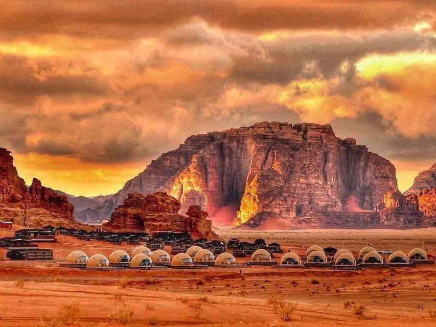 In the heart of Wadi Rum’s majestic desert, stands the incredible Sun City Camp offering serenity and spiritual soothing experience of living in the desert and enjoying the simple Bedouin life of the valley with its unmatched authentic charm and beauty. Such an experience is featured through variety of high standard services, amenities, and accommodation options to choose from alongside a wide range of relaxing and adventurous recreational activities. The camp is located in Wadi Rum about 60 km from Aqaba city and 313 km from Amman. Upon arriving , guests will be welcomed with fresh juice and scented refreshing face towels that will initiate the amazing journey in the desert. Guests can choose from any of our panoramic mountain view tents whether it is the traditional Bedouin tents (Thirty Tents) , the royal tents (Eight suites) , family suites (two suites) or our unique signature Martian Domes (Twenty Rooms). The cam is equipped with a large reception tent with WI-FI along with the dining area where guests are offered freshly cooked meals in buffet style with variety of dishes to choose from. At Sun City Camp , you can enjoy a wide range of adventurous, daring,and fun activities that suit you or simply choose to stop the watch and spend the day with nothing but serenity and the wind. You can also enjoy one of a kind opportunity to connect with the universe through sunrise or sunset yoga or simply gaze at the stars, through the futuristic domes of the valley that take you millions of miles away from earth. Combining modern style living and comfort while still living the authentic desert experience, the Sun City camp signature Martian Domes offer the guests the unique experience of combined luxury and authenticity. Sun City Camp is the first in the region to offer such domes that will allow you to gaze at the magnificent moon and stars from your own comfortable bed. If you are a group of friends or a family traveling with younger children and would rather have the children close to you, our Family Suites are the ultimate desert retreat where you can enjoy your privacy and yet rest assured that the children are safe. The Family Suite offers a king size bed in one of the rooms and another room with twin beds, a bathroom, a living room with sofa bed and a terrace. For our guests who would like to enjoy the simple and authentic desert experience as close to the habitat of Bedouins and get a glimpse of their lives, the Royal Tent offers a unique heritage experience that will take you back in time to the indigenous ethnic Bedouin life. The Royal Tent features a comfortable bedroom, a bathroom, a Majlis area (living room) and a terrace. The Standard Tent is an ultimate choice for guests who seek an accommodation that combines the distinctive Bedouin style with traditional simple comfort. Sun City Camp takes pride in offering its guests a generous hospitality that is a trait of the indigenous Bedouins. After a full day at the desert, guests are invited to enjoy a dinner where they would experience Arabia at its glory. Guests will enjoy a taste of the mysteriously slightly spiced Middle Eastern cuisines and the live entertainment that is spontaneously initiated like it did hundreds of years ago with a sound of Oud or Rababah (mini violin). Many of our guests can’t help but join the traditional folklore dances, have a good time and enjoy the rhythm of Arabia.