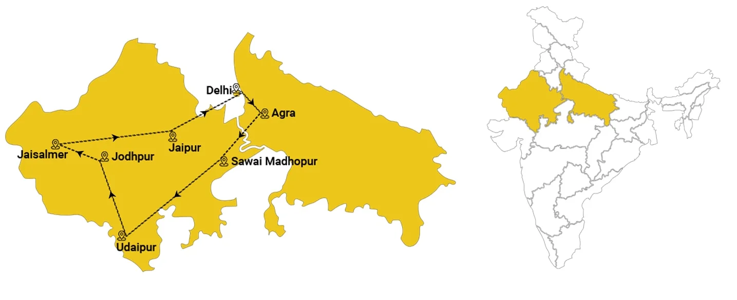 Deccan Odyssey Route – The Heritage Odyssey takes you on an 8-day tour to explore the Land of Royals and Maharajas, Rajasthan. Discover this beautiful and diverse region and its tourist attractions in royal style, just like a king! The most fascinating way to experience Rajasthan is on the Deccan Odyssey, a train that reflects the grandeur and majesty of the bygone era when kings and queens lived in luxury.