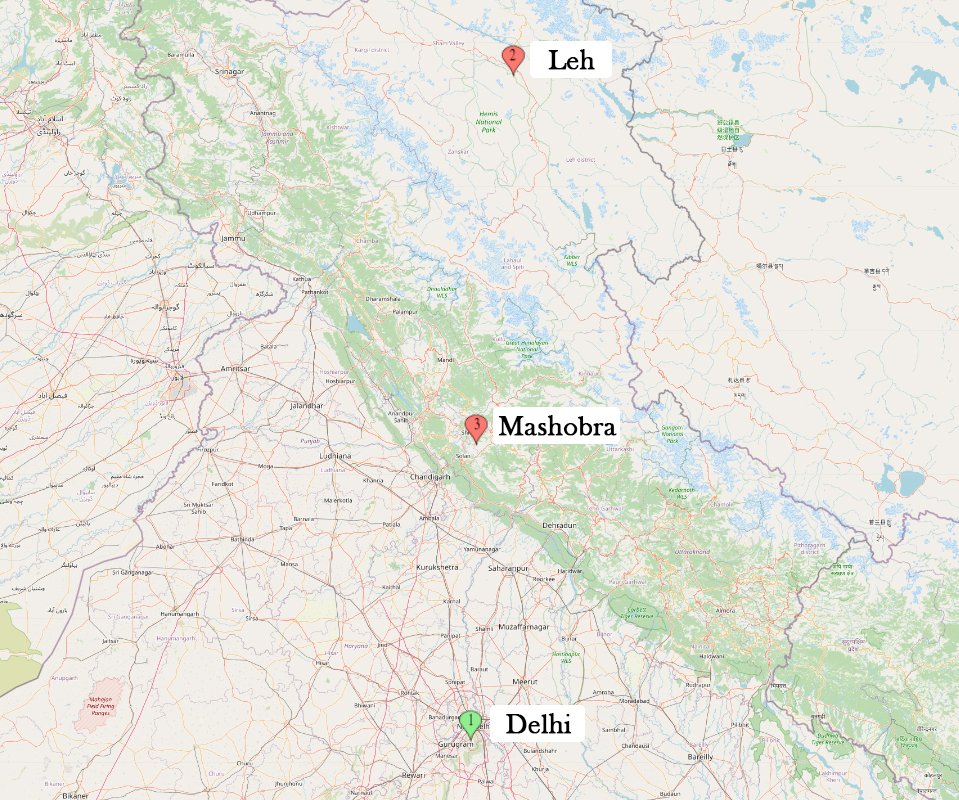 Leh – Delhi – Chandigarh (By Flight) & Chandigarh – Mashobra (By Private Vehicle 120 Kms 3 ½ Hr Drive)