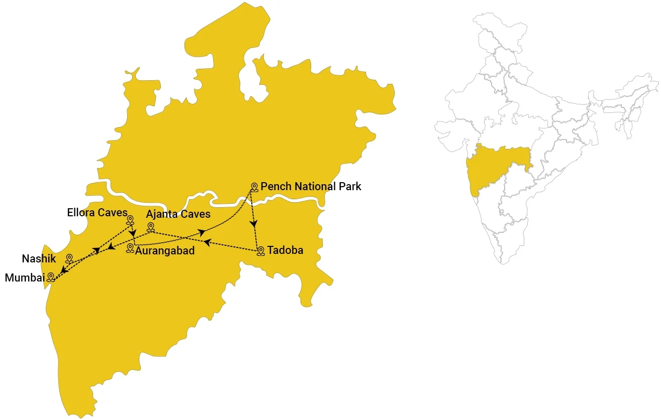 Embark on an 8-day journey through the neighborhoods of Maharashtra, the charming Western Ghats, the majestic Deccan region, and the varied stretches of central India. Highlights of the tour include visits to the UNESCO World Heritage Sites of Ajanta and Ellora Caves, exploring the wine capital of India – Nashik, encountering wildlife at Pench and Tadoba, and much more. Throughout the tour, indulge in world-class comforts, royal treatment, and sumptuous cuisine aboard the Deccan Odyssey.