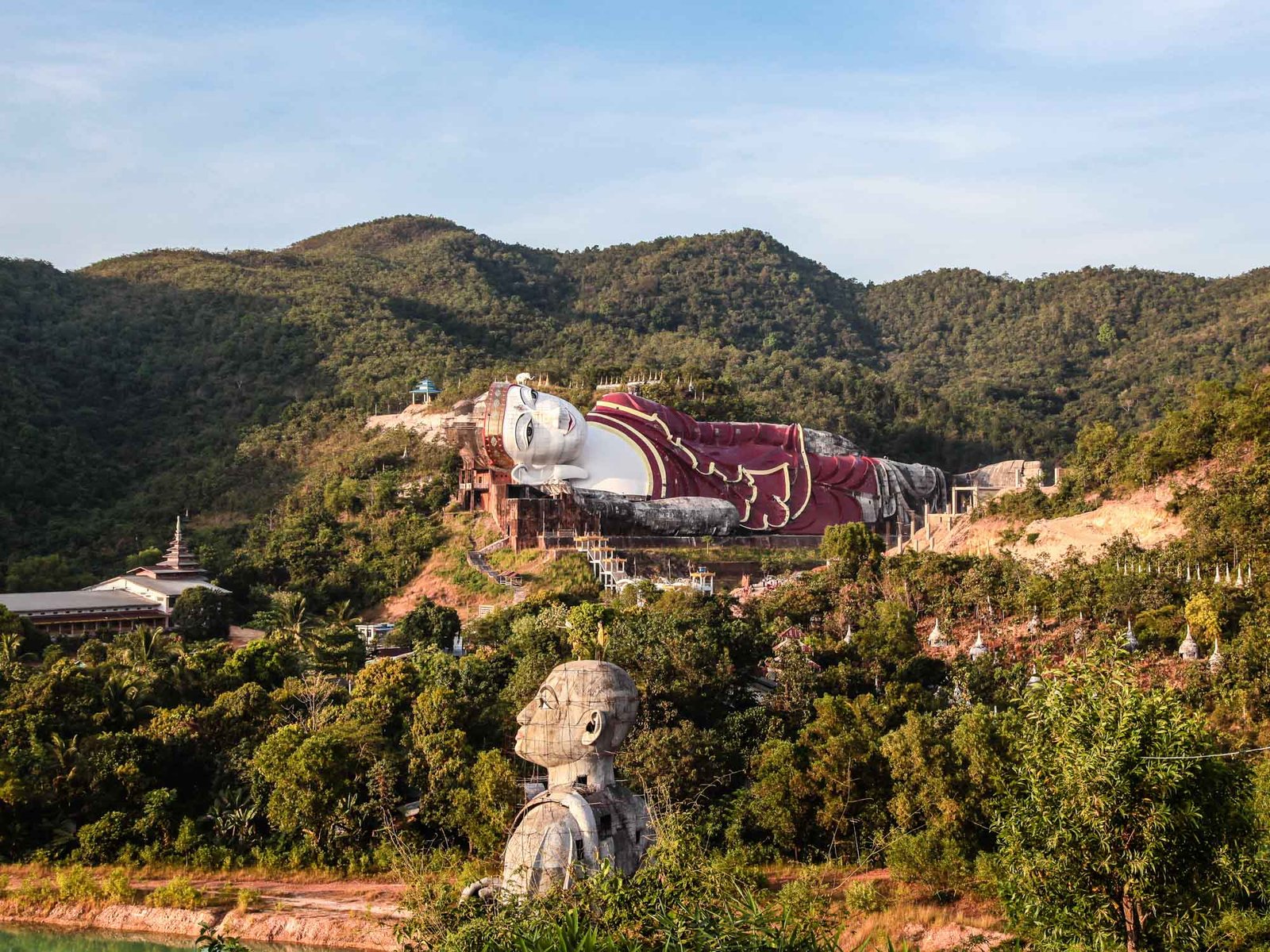 Drive to Mudon, renowned for its textiles. Visit Kyauktalone and Winsein Tawya, a significant site for Buddhist devotees featuring a large reclining Buddha. Explore the Hpa-Out Tawya meditation center and continue to Kyaik-Khami Yele Paya before returning to Mawlamyine.