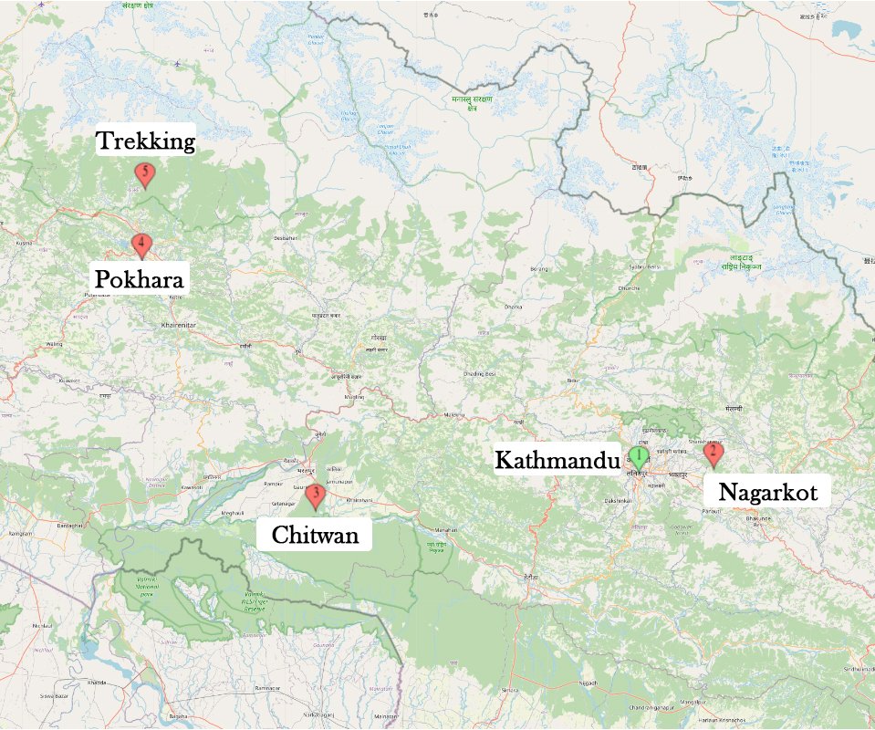 Embark on an unforgettable journey through Nepal with our most popular tour package, combining the best of Kathmandu, Nagarkot, Chitwan, and Pokhara. This comprehensive package offers a blend of cultural heritage, natural beauty, and wildlife adventure, providing a well-rounded experience of Nepal’s unique charm.Kathmandu Valley is home to several UNESCO World Heritage Sites, rich in traditional arts, architecture, and fascinating history. Here, you can immerse yourself in the unique lifestyle and culture of the Nepali people. Explore ancient temples, palaces, and bustling markets that tell the story of Kathmandu’s vibrant past and present.Nagarkot, a serene village at the rim of the Kathmandu Valley, is renowned for its stunning views of the Himalayas, including Mount Everest. This village offers a peaceful escape from the hustle and bustle of Kathmandu. Enjoy the breathtaking sunrise and sunset views over the mountains, and relax in the laid-back atmosphere, perfect for recharging your batteries amidst beautiful scenery.Chitwan National Park, Nepal’s first national park, is located in the subtropical inner Terai lowlands of south-central Nepal.