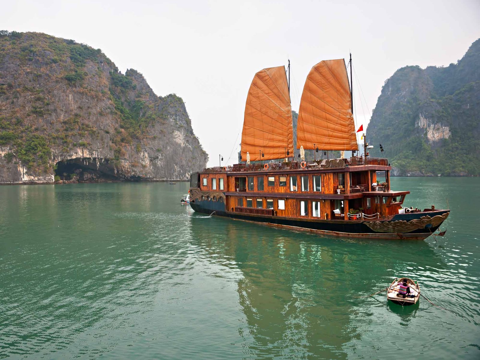 Wake up to the soothing sounds of the ocean coming to life and start your day with breakfast. If you’re an early riser, you can take a Tai Chi class and watch the sunrise over the bay. After breakfast, visit a stunning limestone grotto and then head back to the junk for a final cruise through Ha Long Bay.