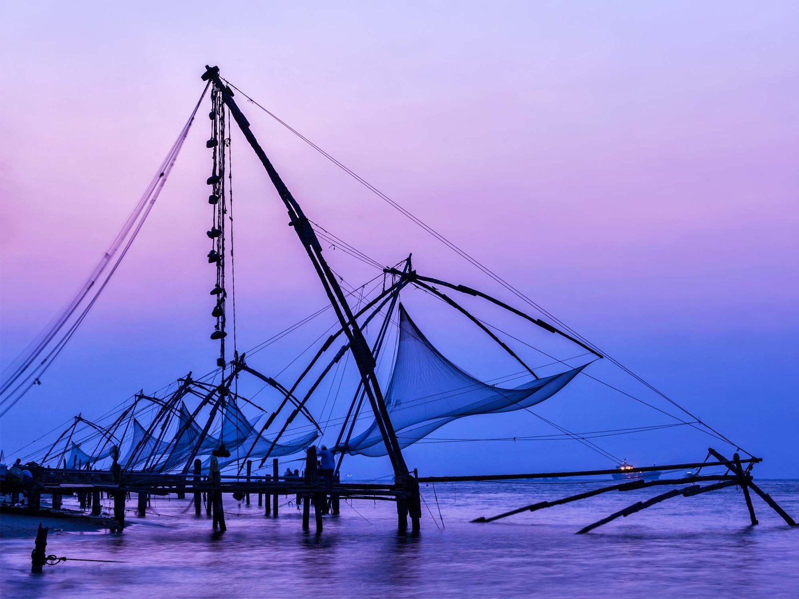 Visit Cochin (Kochi) to experience a fusion of colonial charm, artistic vibes, and buzzing streets. Fort Kochi showcases Dutch houses, Chinese fishing nets, and Jewish synagogues all in one walkable neighborhood.